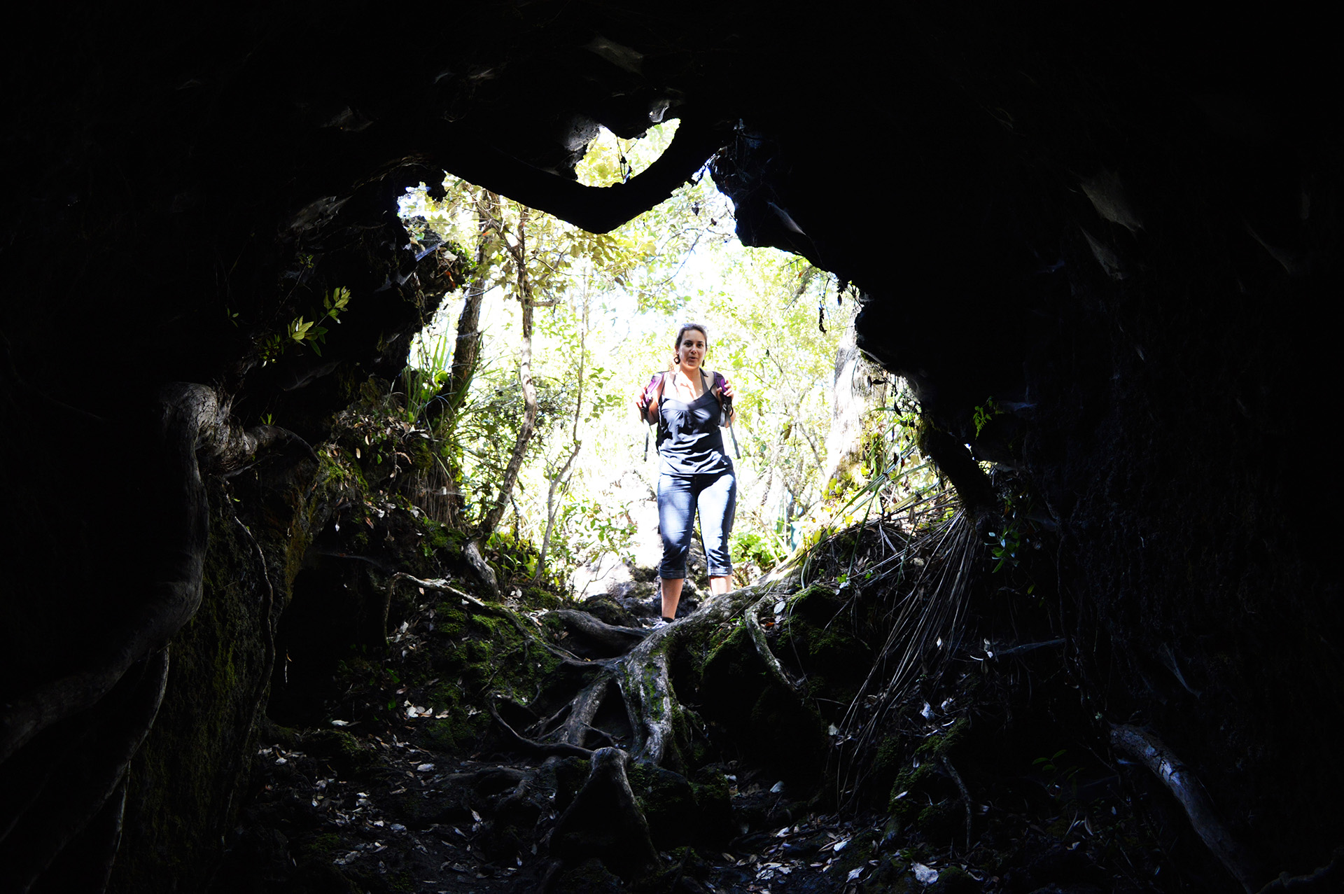 de là, et les premiers pohutukawas ont contribué a créé une végétation luxuriante. D’ailleurs ici nous pouvons parler de forêt de pohutukawas, ce qui est plutôt rare et très beau. Dommage qu’ils ne soient pas tous revêtus de leur délicates fleurs rouges (le pohutukawa est l’arbre de noël néozélandais car il fleuri fin décembre). Sur l’île, aucune habitation, aucune agence de tourisme ni aucun magasin. Seuls les nombreux oiseaux constituent une population riche et colorée. En chemin, nous croisons souvent de part et d’autre du sentier les restes très évidents d’une coulée de lave. C’est très impressionnant. De loin cela ressemble à un champ labouré mais la terre meuble est remplacée par de la roche volcanique très dure. Autres vestiges de l’éruption, les tunnels de lave, dont certains sont accessibles et dont nous ne manquons pas la visite, assez excitante. Pour une dernière fois nous entrons sous terre et allumons notre lampe frontale pour nous déplacer dans ces étroits couloirs. Du haut de Rangitoto, la vue sur le golfe est magnifique. Nous jouissons d’un temps très ensoleillé, ce qui nous permet de contempler toutes les îles qui le composent, les nombreux voiliers qui l’arpentent et bien-sûr les hauts buildings d’Auckland surplombés par la fine Sky Tower. Nous sommes épuisés par cette journée de marche mais heureux d’avoir pu profiter encore une fois de l’une des nombreuses merveilles naturelles du pays avant notre départ.