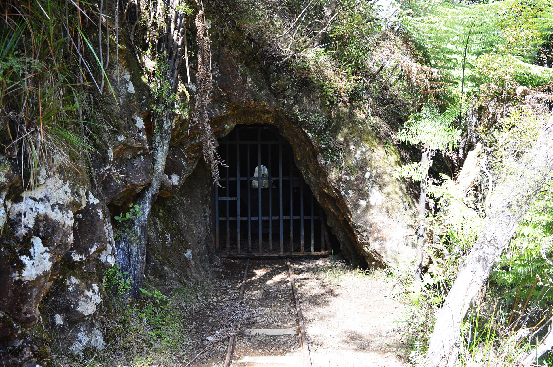 Sur la route en direction de Tauranga nous nous arrêtons dans les superbes Karangahake Gorges afin de prendre le sentier des « Windows Walk ». Ici se trouvait au 19ème siècle une mine d’extraction et de transformation d’or et les ruines des bâtiments ainsi que des machines sont encore visibles dans le paysage. C’est un pur régal pour les yeux et comme tout est planté en plein bush, cela fait très « aventureux ». En plus des ruines, les anciennes galeries sont accessibles au public et offrent de beaux points de vue et des sensations très excitantes. Munis de nos torches, nous pénétrons dans les sombres couloirs creusés dans la roche et suivons les rails empruntés autrefois par les petits wagons chargés de métal précieux. Une fois l’entrée passée, nous sommes dans le noir complet ce qui nous amuse beaucoup et nous permet de revoir une dernière fois des glowworms suspendus au plafond et