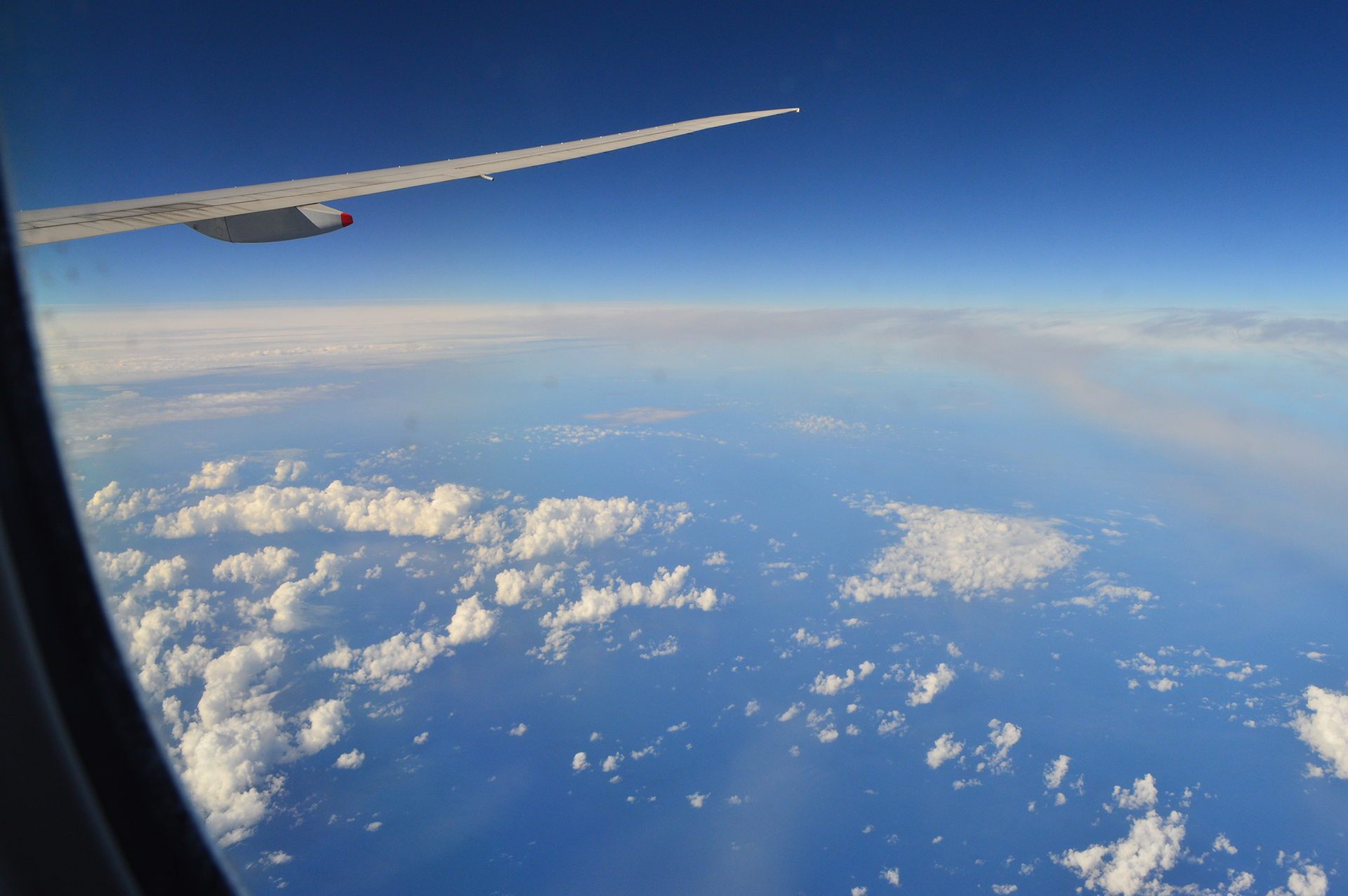 Notre premier vol dure 12h40 et se déroule plutôt bien (peu de zones de turbulence). Nous ne dormons pas beaucoup car nous ne sommes ni fatigués (départ à midi oblige) ni très bien installés mais cela nous est égal car nous pouvons boire des Singapour Slings (cf. Las Vegas Parano) à volonté et regarder tout un tas de films dont le deuxième volet de Bilbo…
