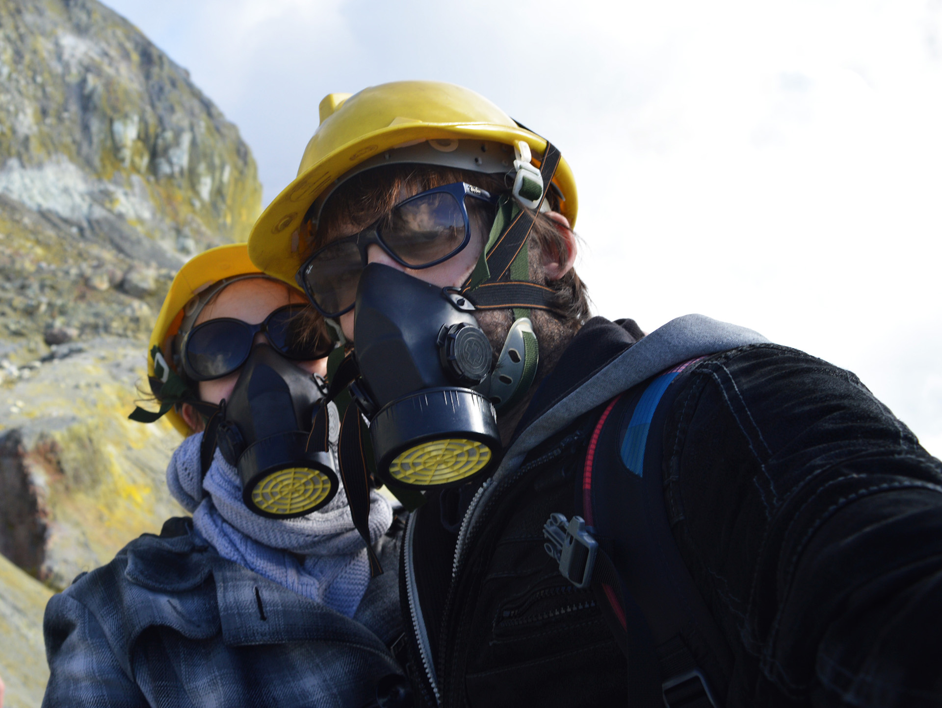Avant toute chose, le guide nous distribue des casques et des masques, puis il nous fait descendre du bateau pour nous amener sur l’île. Avant de commencer la « visite », il nous explique les règles de sécurité car il y a une petite chance que le volcan entre en éruption sans prévenir et qu’à ce moment-là des rochers soient projetés un peu partout ! Flippant mais maintenant que nous sommes là autant prendre ce risque !