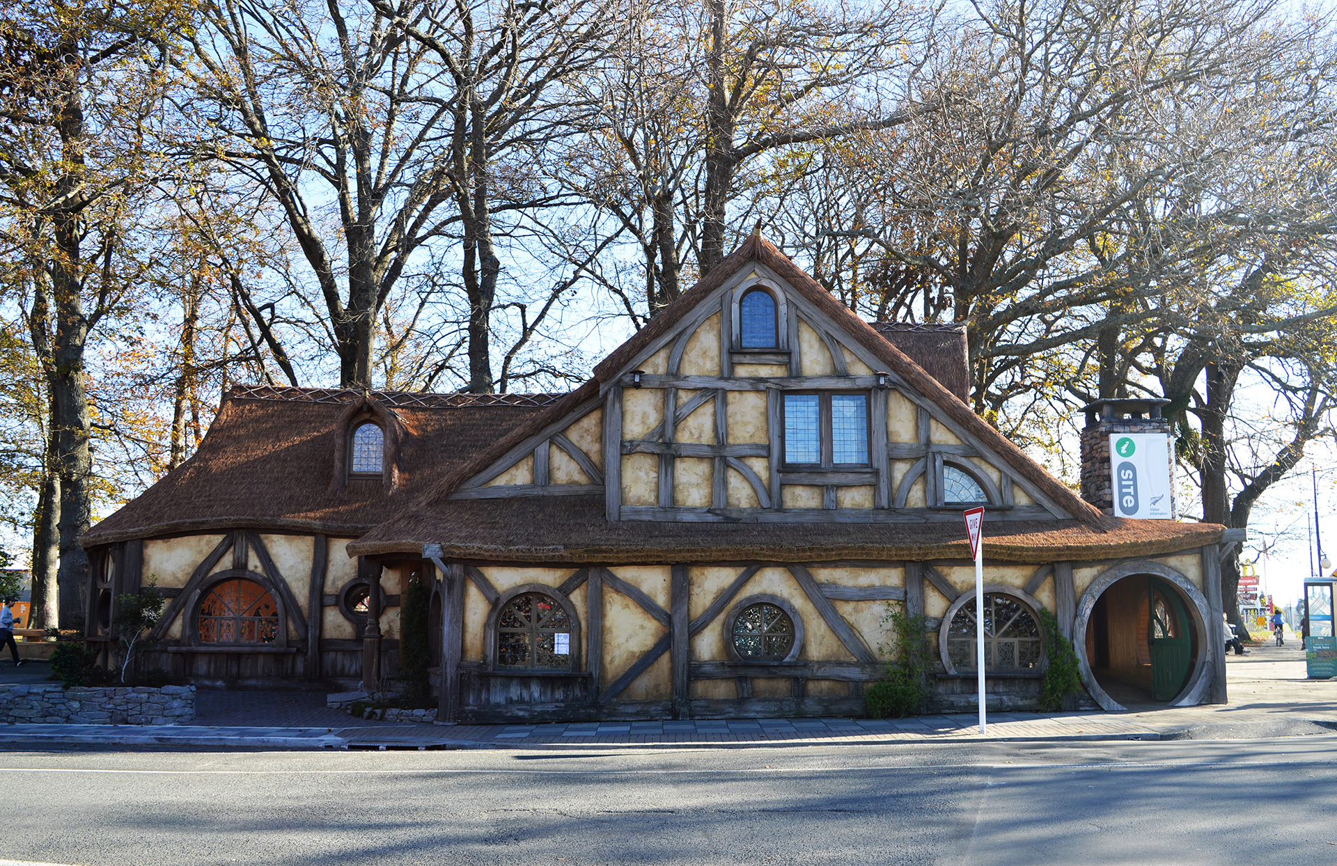 En fin de matinée nous prenons donc la route en direction de Matamata pour déguster notre lunch dans le petit restaurant japonais « Hobbit Sushi » (évidemment) puis nous poster au point de rendez-vous du Hobbiton Tour. L’office du tourisme (I-site) du village, d’où nous partons, n’est pas compliqué à trouver puisque le bâtiment s’inspire des maisons hobbites ! C’est très amusant et à la fois peu étonnant puisque des vingtaines de touristes se pressent devant chaque jour pour partir visiter le site.