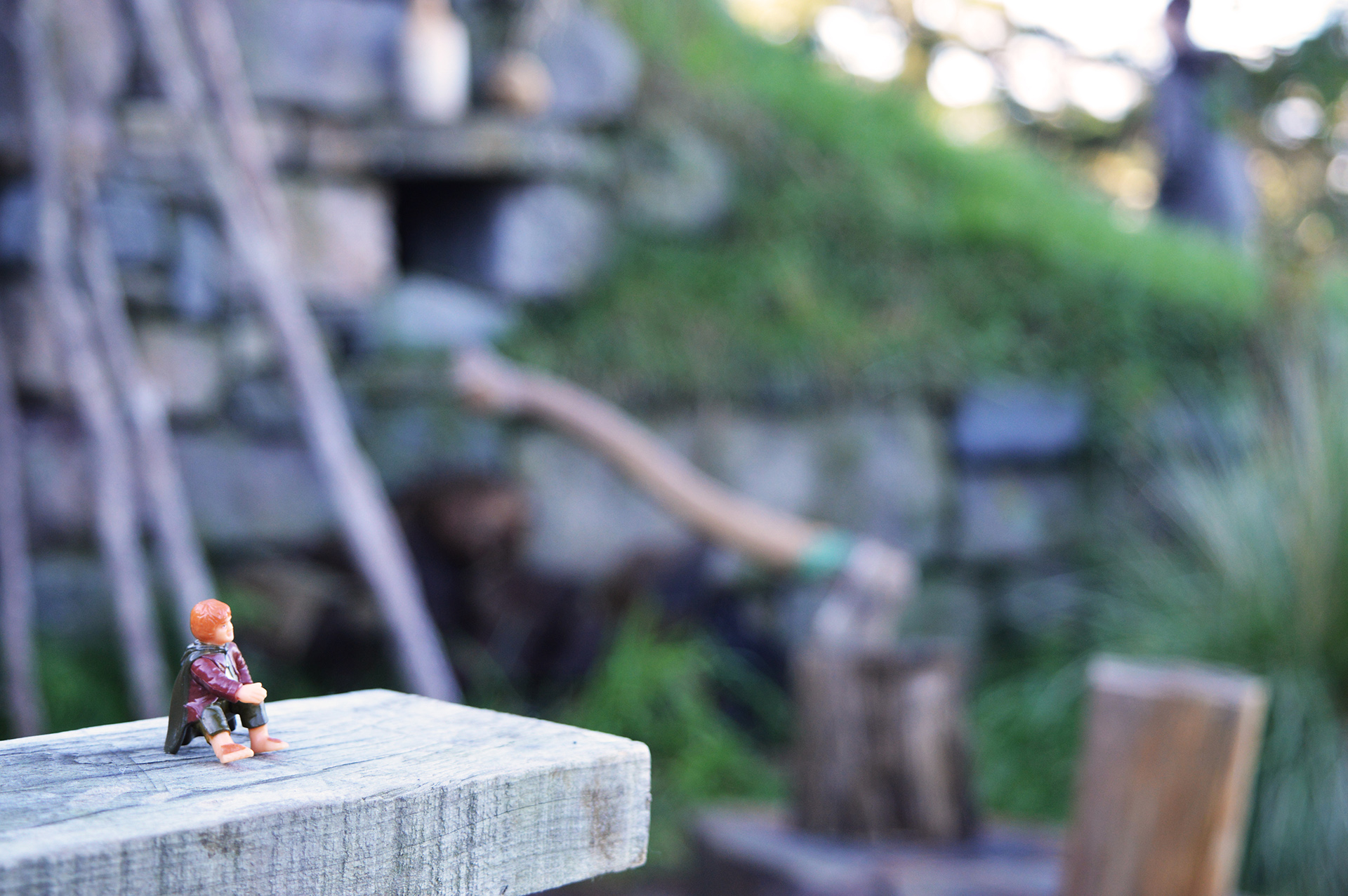 Le guide avance très vite (question de business, un autre groupe arrive 15 minutes après nous) mais nous parvenons à trouver tous les recoins et à nous émerveiller devant chaque petits détails. Les décors sont extrêmement bien faits et nous nous attendons à chaque instant à tomber nez à nez sur un Hobbit ! Photos par-ci, photo par-là, même nos figurines sont au rendez-vous, et même si l’effet n’est pas optimal, nous rions beaucoup en les faisant poser devant les petites maisons, jardins, brouettes et autres outils miniatures !
