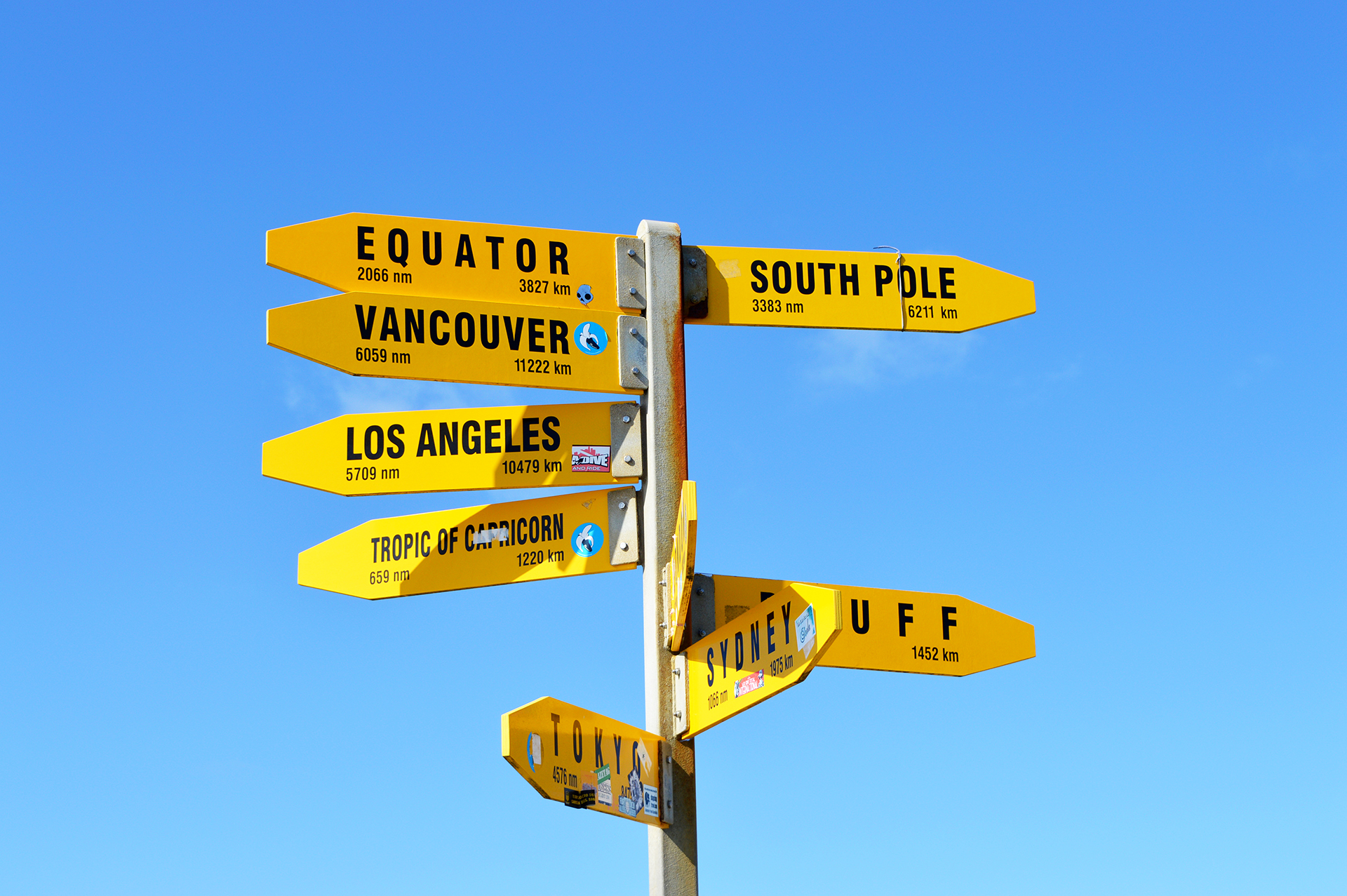 Nous voyons absolument tout ce qu’il y a voir : le beau phare, le célèbre panneau indiquant les distances de ce point aux grandes villes de par le monde (on est vraiment loin de tout !), la rencontre entre l’océan Pacifique et la mer de Tasman qui provoquent au loin de grands tourbillons (pour les Maoris ces tourbillons représentent la rencontre entre l’océan mâle et la