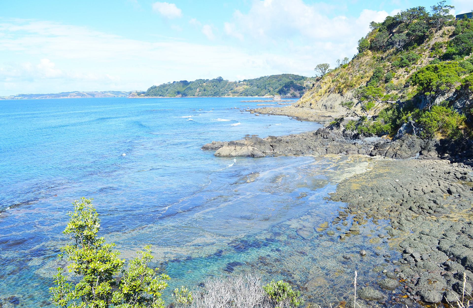 Nous passons nos journées à nous reposer de notre dernière semaine et à découvrir les environs : siestes, promenades dans le bush (forêt luxuriante remplie de fougères, de plantes grasses, d’oiseaux et insectes aux sons étranges – c’est dans ce type de forêt néozélandaise que le film « Jurassic Park a été tourné), ou encore ballades le long de la côte donnant sur l’océan pacifique. Les paysages sont splendides et le temps est exquis aussi nous passons des journées très agréables !