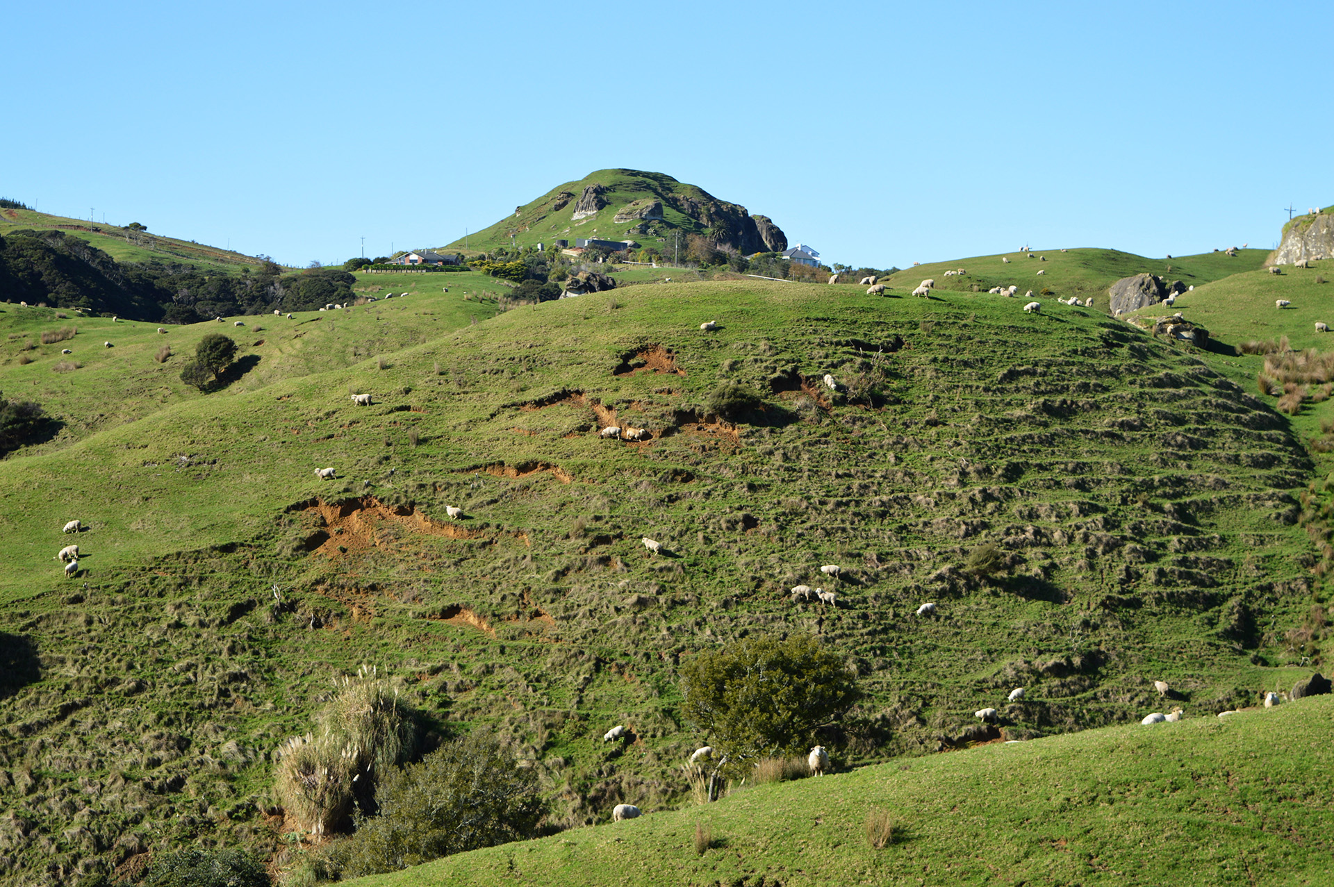 Nous passons le village et continuons au Sud en suivant une route sinueuse entourée de grandes collines vertes où pâturent vaches et moutons. Au bout de quelques kilomètres des rochers gris apparaissent. Ils parsèment les collines et le décor devient très surprenant. Ils semblent avoir été posés là par hasard ou comme s’ils étaient tombés du ciel. Certain sont très gros, d’autres plus petits, parfois ils sont tranchants, parfois émoussés et la plupart du temps ils présentent des strates horizontales ou verticales. De temps à autre, les collines sont vraiment très escarpées et des petits canyons peuvent se dessiner entre elles. C’est vraiment très beau.